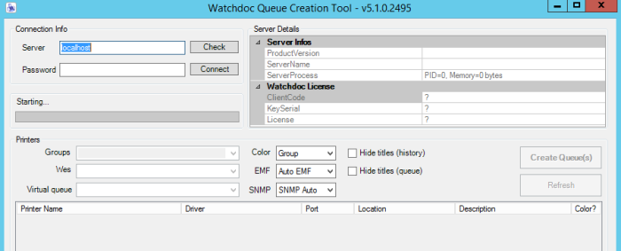 In the Watchdoc Queue Creation Tool, complete the settings in the Connection Info section: