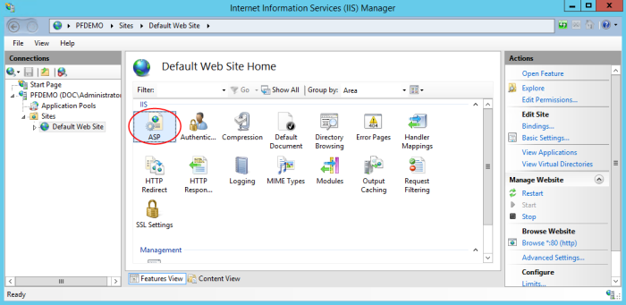 a. go to the server on which is installed the Watchdoc IIS service and launch the inetmgr command ;