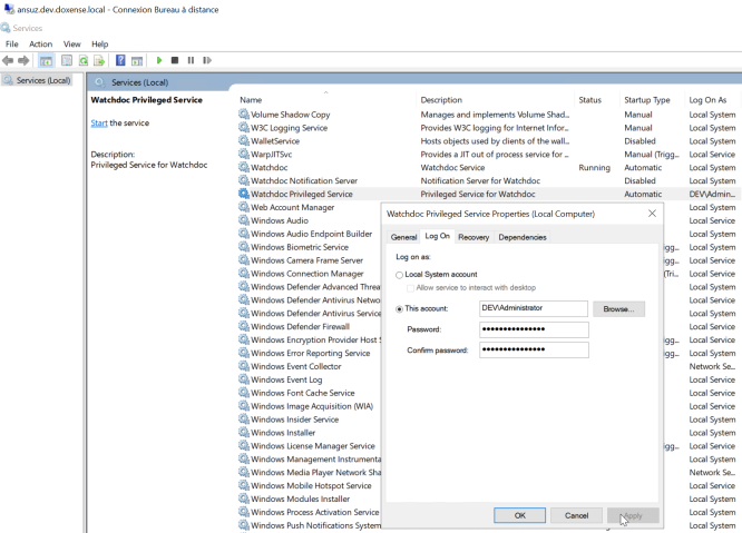 look for Watchdoc Privileged services in the list and right click on Properties ;