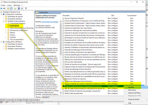 In the Local Group Policy Editor, click Computer Configuration > Administrative Templates > Printers.