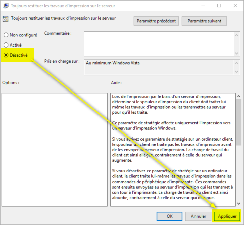 In the "Always return print jobs to the server" parameter interface, tick Off, then click Apply > OK: