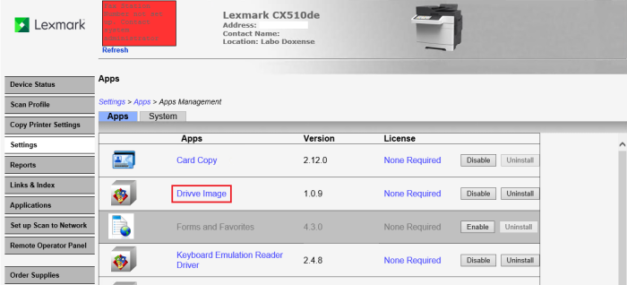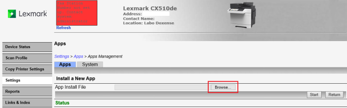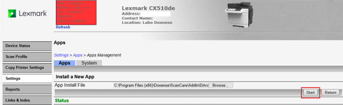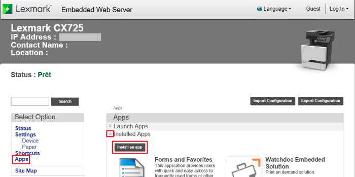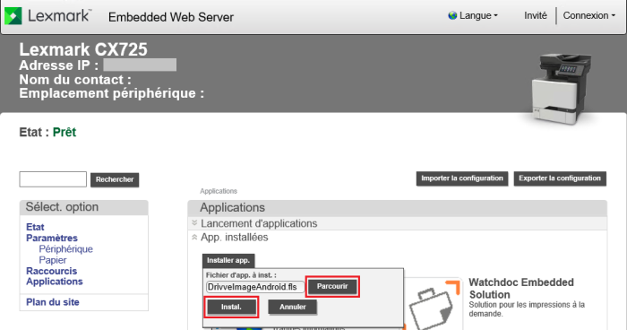 Sometimes the automatic installation of Watchdoc ScanCare on a Lexmark device fails. In this case, it is necessary to install manually.