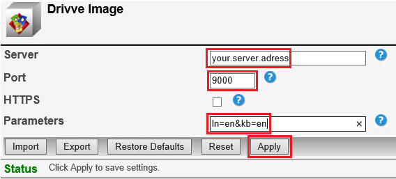 11. On the Configure tab of the Drivve Image interface, for the Server setting, enter the IP address of the Watchdoc ScanCare server