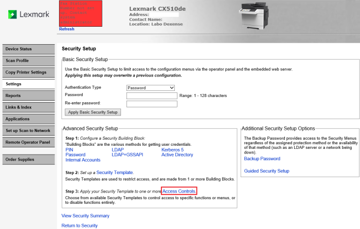 5. Go to the section Advanced Security Setup, click Acces Controls:
