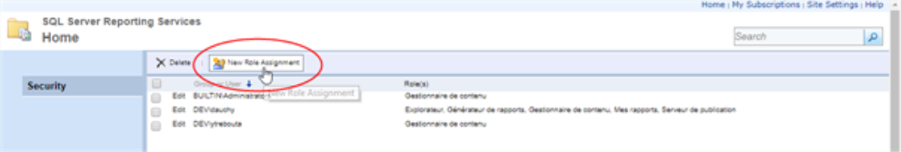 On the Security tab, click New Role Assignment;
