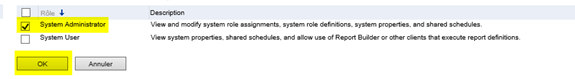 Check the System Administrator role and click OK: