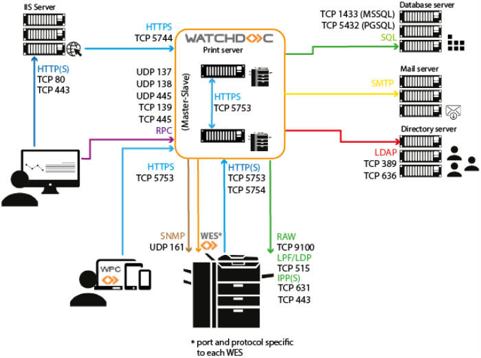 | WES (Watchdoc Embedded Solution) on printing device | TCP 5754 or 5753 |
