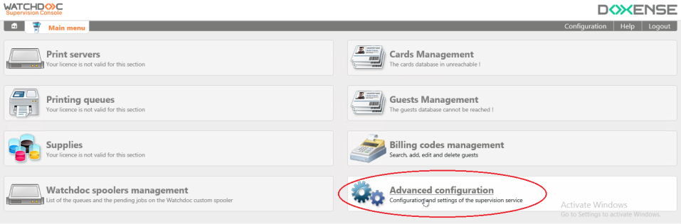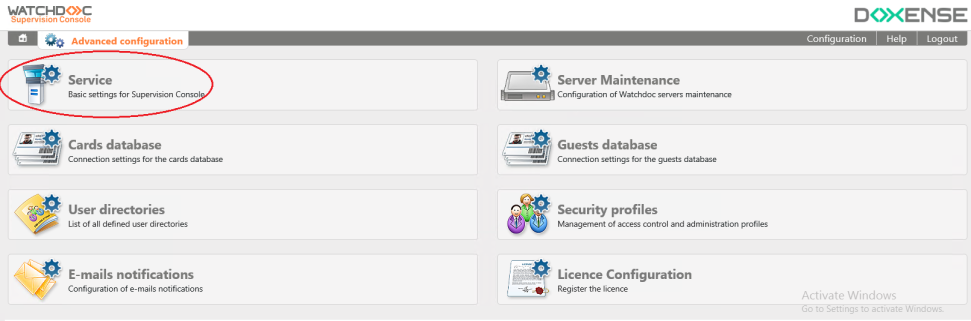 If it is not the default file C:\program files\doxense\Watchdoc\data\config.xml, specify an other config.xml file. |