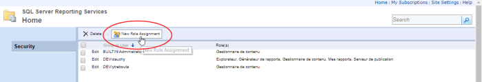 By default, MS Reporting Services® gives an access only to the local administrator. To add rights to a domain user: