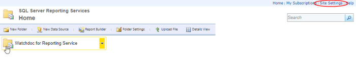 with Internet Explorer ran as a local administrator, access the reports manager URL: http://localhost/Reports_WATCHDOC ;