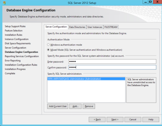 In the Database Engine Configuration interface, specify the authentication "Mixed mode" (SQL Server and Windows® authentications) ;