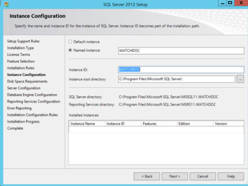 In the Instance Configuration interface, in the Instance field, enter the instance name (MSSQLSERVER by default);