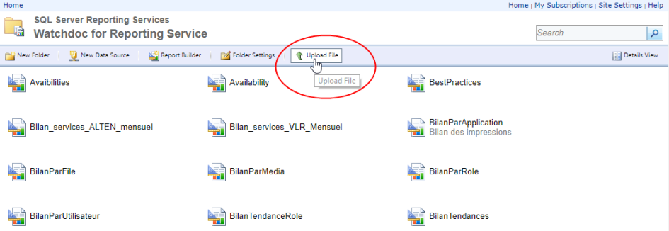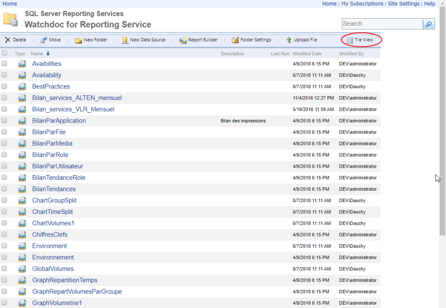 Access the reports manager of Reporting Services (http://nomduserveur/Reports_WATCHDOC);