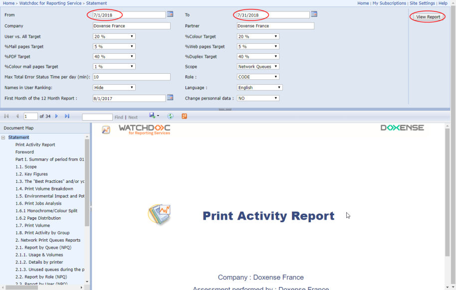 In SQL Server Reporting Services, go to the Watchdoc® file;