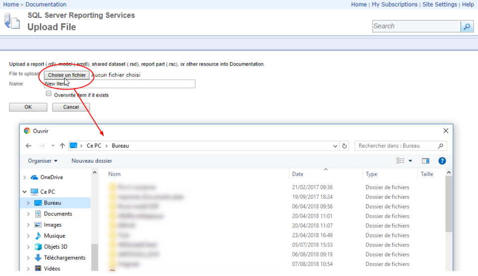 Click on Browse and browse your workspace to select the first .rdl report (named Reports in the WRS sub-folder);