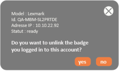 è From this point on, you can no longer use your badge to authenticate yourself on a printing device.