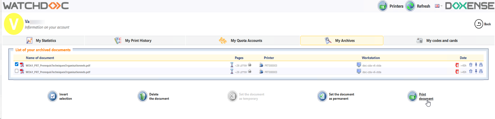 Watchdoc - Usage - Use the web page and My Account page