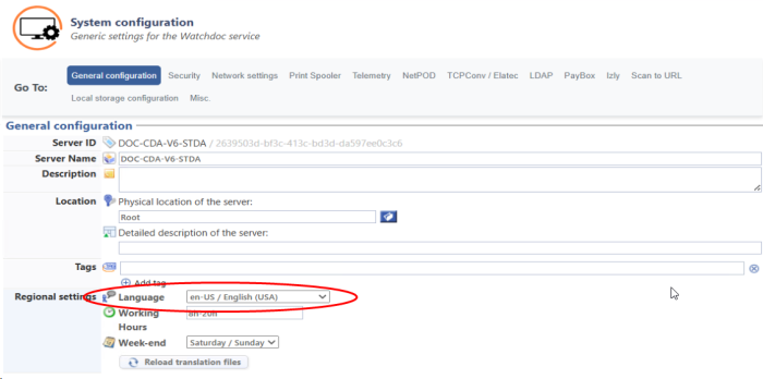 Note : If notifications are displayed in a language other than the desired language, configure Watchoc's regional options to specify the desired language (Main menu > Configuration section > Advanced configuration > System configuration > General configuration section > Regional settings > Language setting):