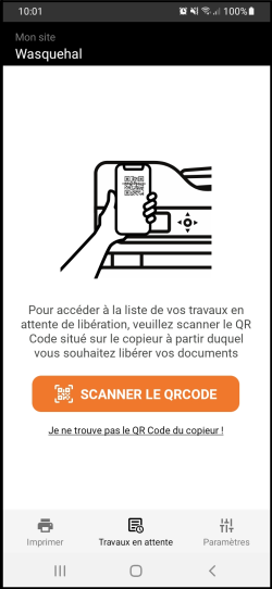 Watchdoc Client For Android invites you to scan the QR code to release the print on the chosen device: