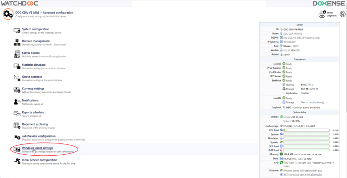 in the Advanced Configuration interface, click on Watchdoc Print Client: