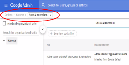 In the menu, click on Devices > Chrome > Apps&Extension.