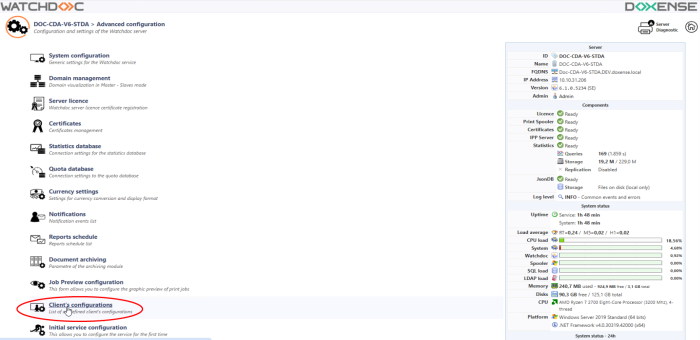 in the Advanced Configuration interface, click on Windows Client Configuration or Client's configuration: