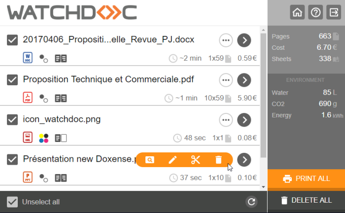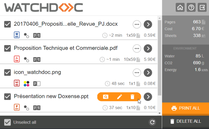 By default, all jobs are selected. Users can release all their jobs in 2 clicks: to launch the application, then for the Print All button.