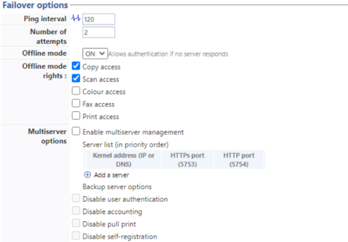 Disable pull print: With this option, the print on demand application will be disabled. This is useful because if the backup server has no access to the jobs of the user.