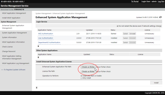 select the canonAuthAppv1.0.lic file that you have previously downloaded:
