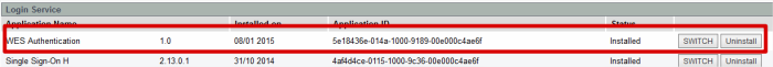 The WES Authentication application appears in the list at the top of the Connexion Service page.