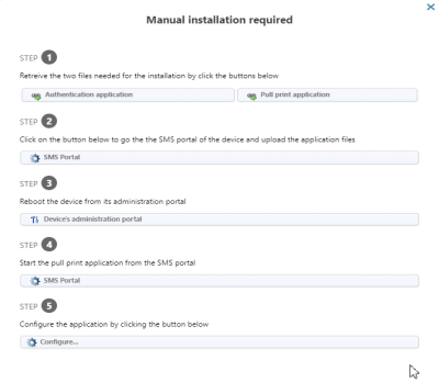 In the Manual installation required interface, Step 5, click on the Configure button:
