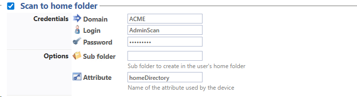 Subfolder: use this field to specify the subfolder (specific to scans) to be created in each of the user's personal folders;