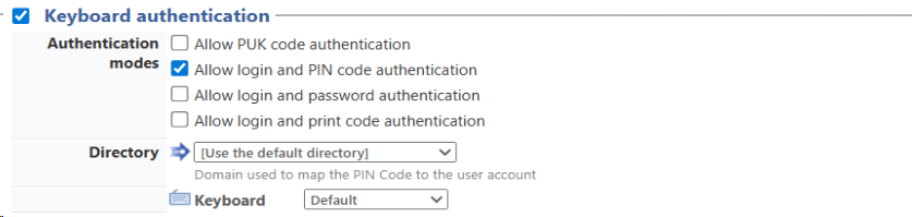 Directory: from the list, select the directory to be queried during keyboard authentication, depending on where the users are registered.