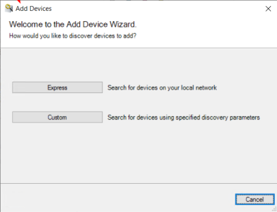 From the list of print devices found, select the Kyocera device on which you wish to install the WES;