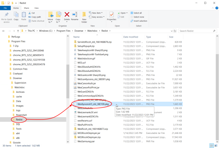 The WES application file can be found in the Watchdoc application installation folder (Watchdoc_Setup_[version#]\Redist). Locate it where it is saved, or download it to your work environment for use when needed:
