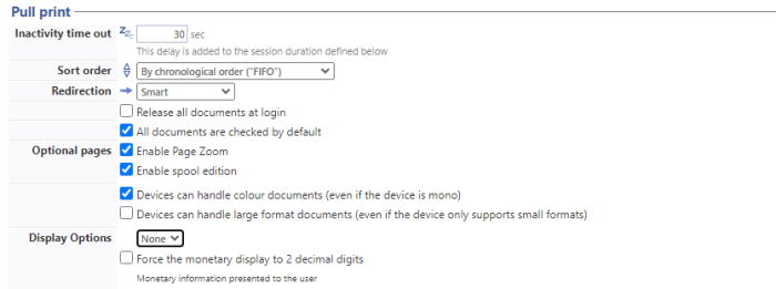 Disable pull print: With this option, the print on demand application will be disabled. This is useful because if the backup server has no access to the jobs of the user.