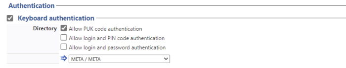 Keyboard authentication: tick the box (at the section level) to enable user authentication from a physical keyboard or the touch screen one, then set out how this authentication works:
