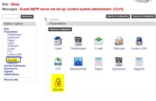 The printing device then reboots. After several attempts, the device no longer restarts automatically: it must be restarted manually.