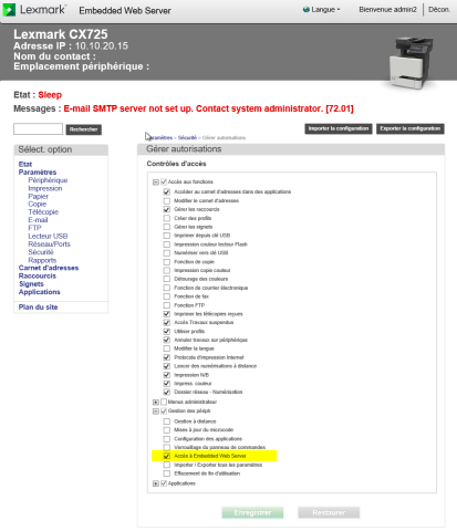 Lexmark eSF - WES -Access control management