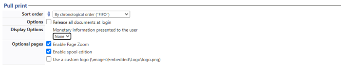 In this section, you can change options about the Watchdoc release application: sort order of the document, tariff information and optional pages.