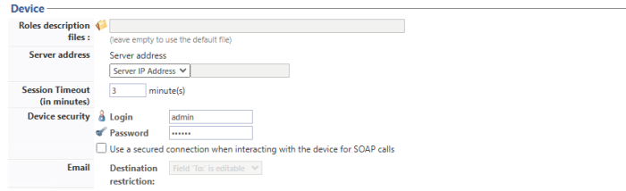 - Use a secured connection when interacting with the device for SOAP calls: tick this box if SOAP calls must be secure.