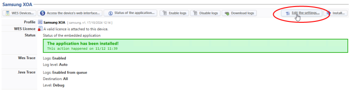 Iin the configuration interface of the queue, in the WES section, click on the button Application status (displayed when the WES is properly installed);