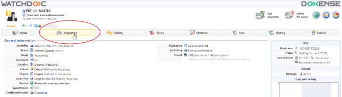 Associate the device to this queue: this button may be usefull to re-synchronise the print queue with the device. Especially after the device has crashed and restarted. In this case, the WES may no longer be displayed on the device screen.