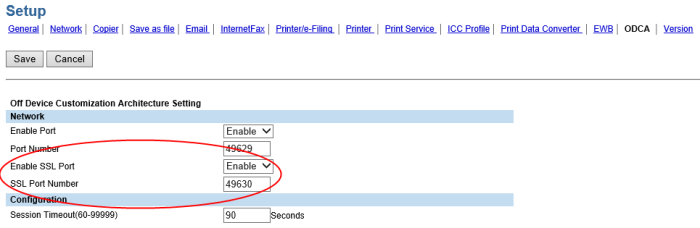 Configuration of the Toshiba WES must be preceded by configuration on the device via its web administration interface.