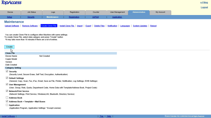 go to the following device administration interface Administration > Maintenance > Create a clone file