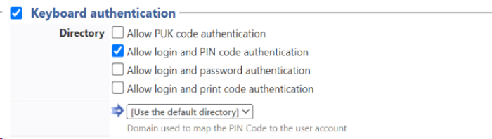 Directory: From the list, select the directory to query during keyboard authentication. If no directory is set, Watchdoc will query the default directory.