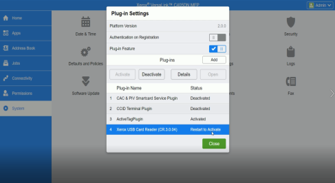 From the Xerox website, download the compressed file VersaLink_Card_Reader_Plugins.7.zip ;