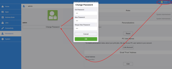 → The interface will reload and you will be logged out: log in with the new password to check that it is valid.
