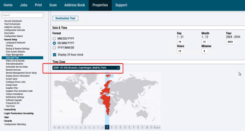 from the device administration web interface, click on System > Date & Time or Properties > General Settings > Date & Time ;