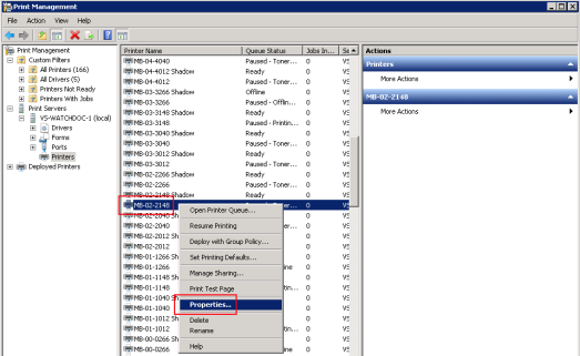 in the Properties section, click on the Services > Printing > Printing Web services menu entry;